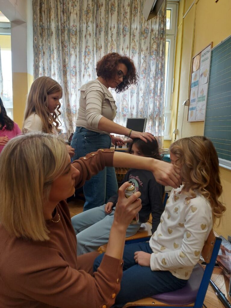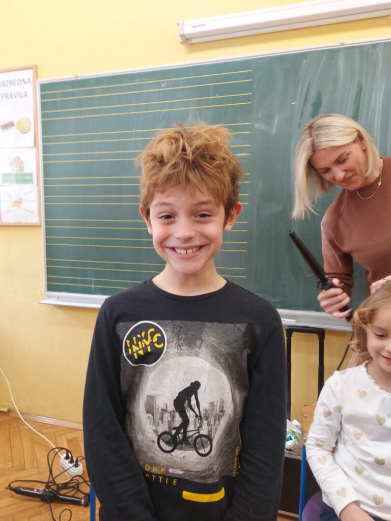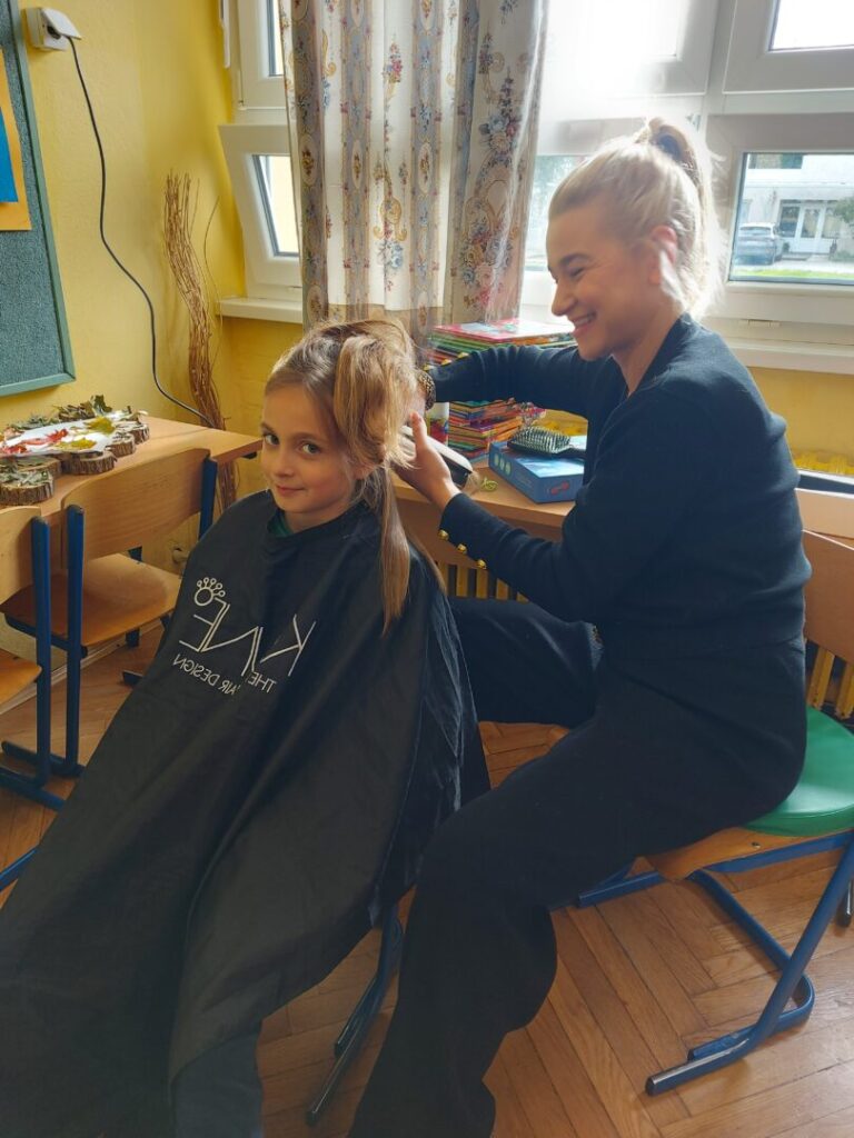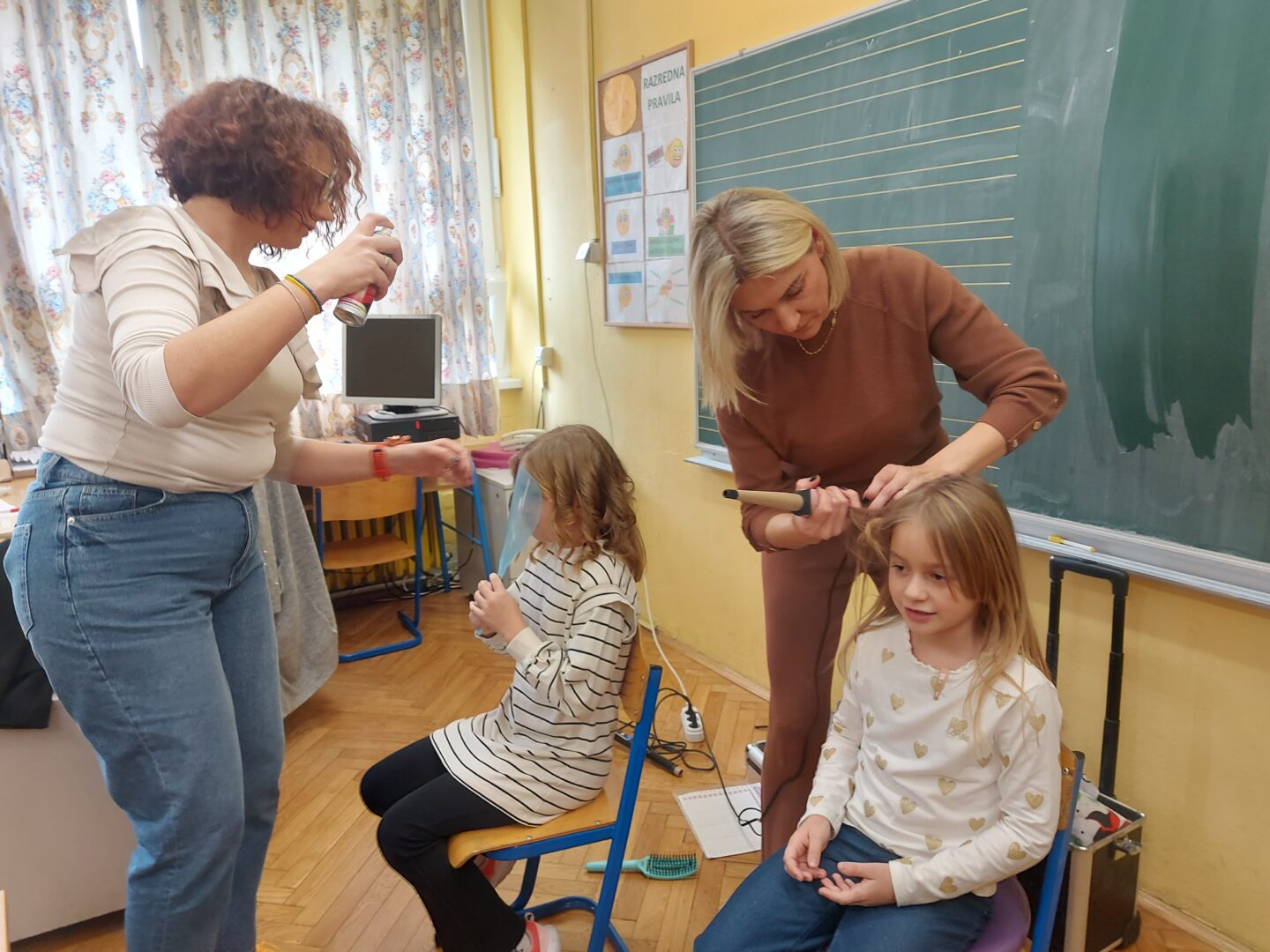 U sklopu projekta o mentalnom zdravlju, 2.b razred proveo je zanimljivu i edukativnu radionicu u kojoj su učenici istraživali povezanost vanjskog izgleda i unutarnjeg zadovoljstva. U goste su nam došle tri majke naših učenika (gđa. Lauc, gđa. Plavšić i gđa. Žugec), koje su po zanimanju frizerke. Gošće su učenicima pokazale osnovne frizerske tehnike te im pomogle da izraze svoju kreativnost i samopouzdanje kroz izradu vlastitih frizura. Učenici su sami osmislili svoje modele frizura, sudjelovali u izradi te na kraju s ponosom pokazali svoje radove. Za trud i maštovitost, svi su učenici dobili diplome za „malog frizera“, a kroz razgovor smo zajedno osvijestili koliko je važno osjećati se zadovoljno iznutra i izvana te kako briga o sebi može pozitivno utjecati na naše mentalno zdravlje.
