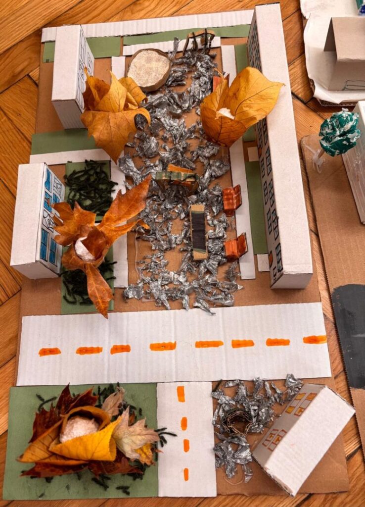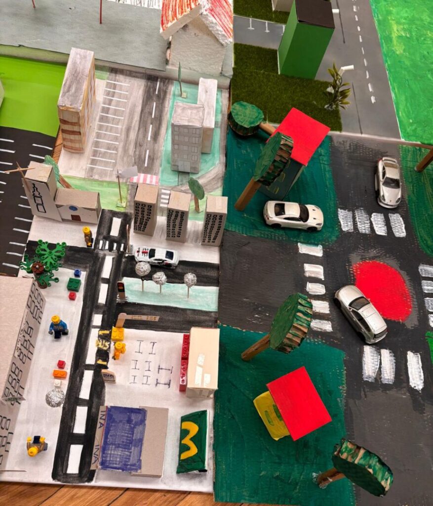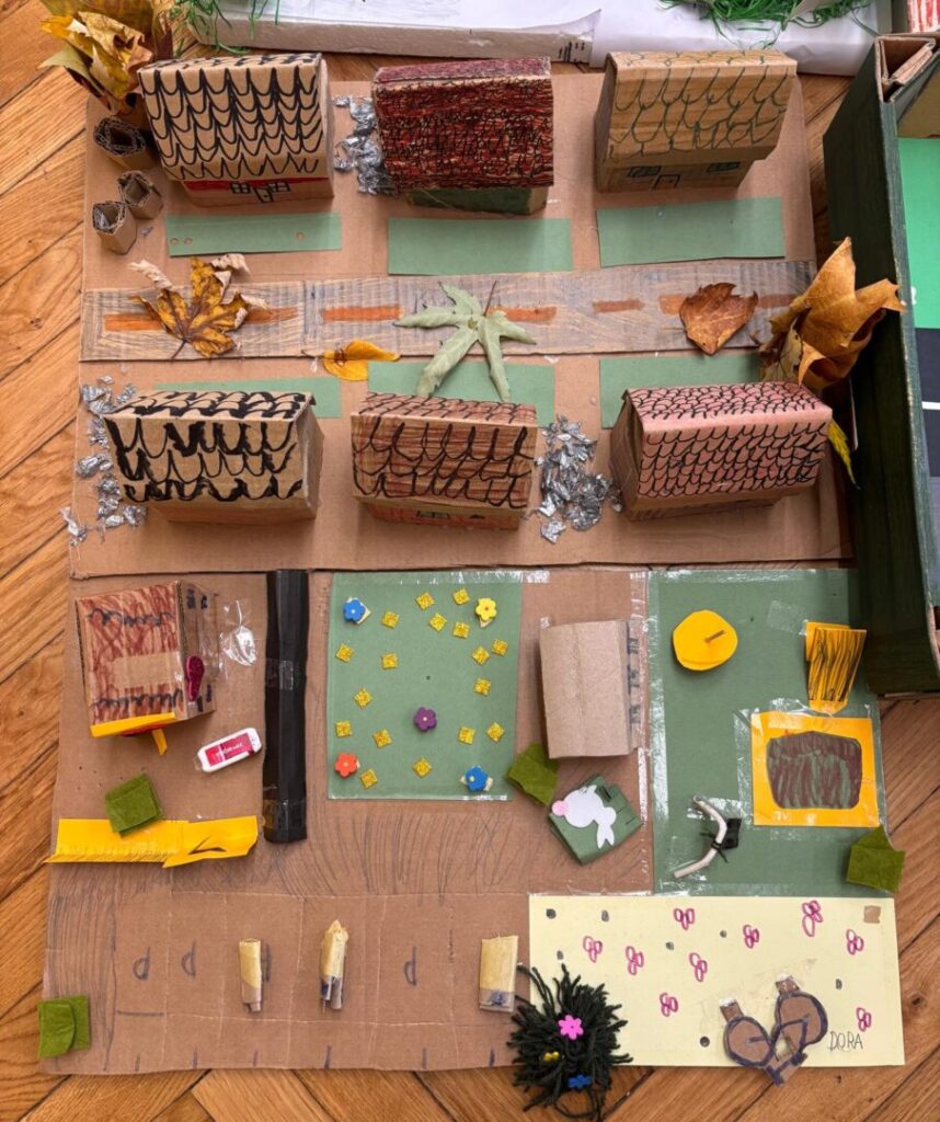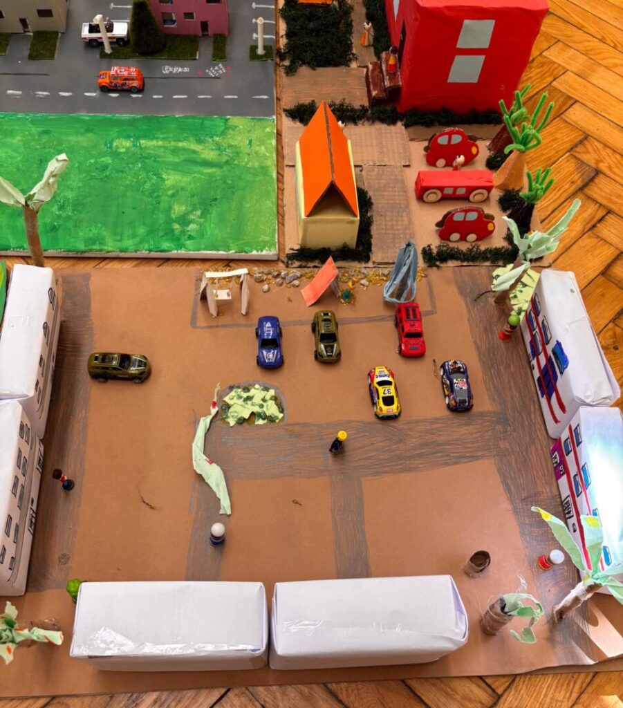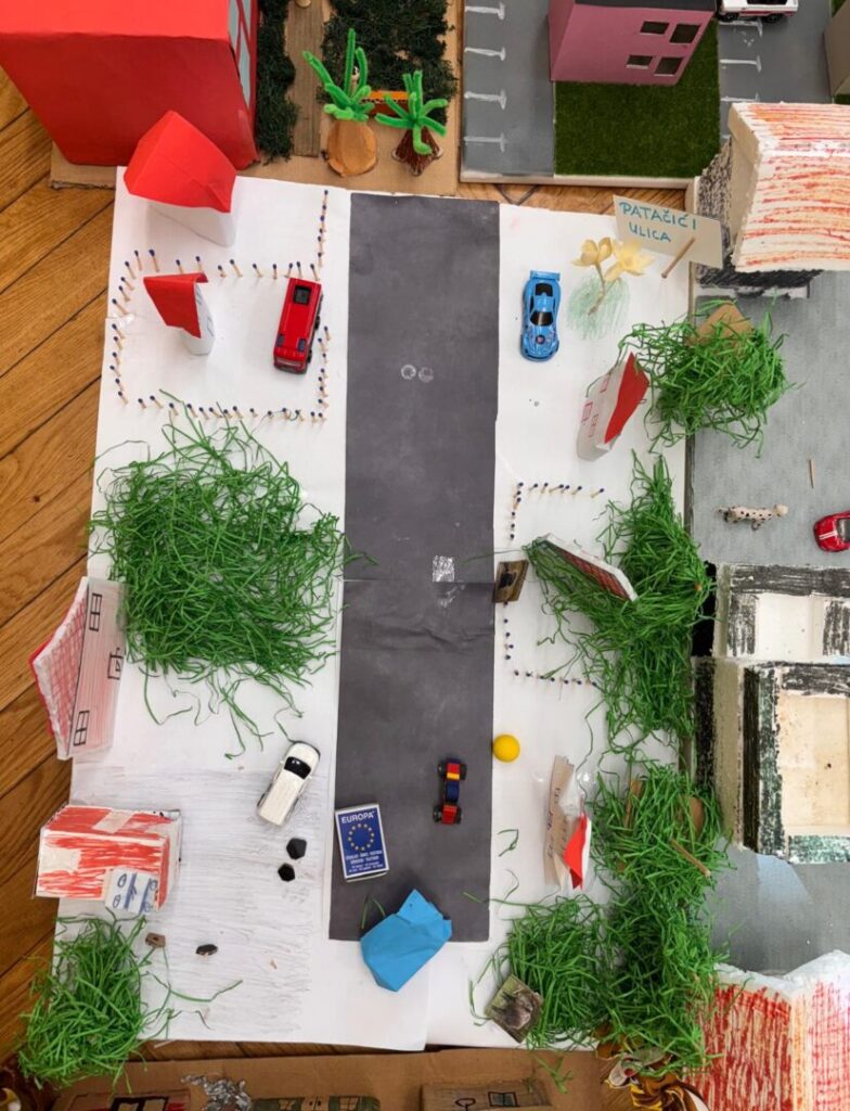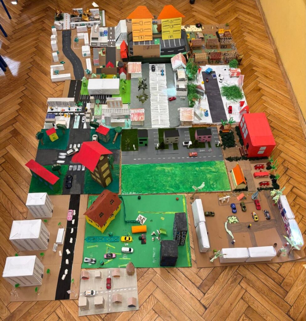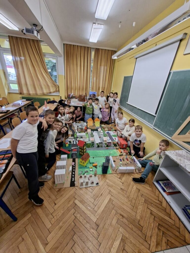Učenici 3.b razreda marljivo su radili na izradi makete svoje ulice u sklopu nastavne jedinice „Makete i planovi mjesta” iz Prirode i društva. Svaki je učenik izradio maketu dijela svoje ulice, a zatim smo sve makete spojili i tako stvorili jedan veliki grad. Tijekom rada učenici su pokazali veliku kreativnost, spretnost i suradnju. Naučili su kako se plan mjesta može prikazati u obliku makete, ali i koliko je važno zajedništvo kada se više malih dijelova poveže u jednu cjelinu. Naš mali grad sada krasi učionicu, ponosni smo što smo ga zajedno izgradili.