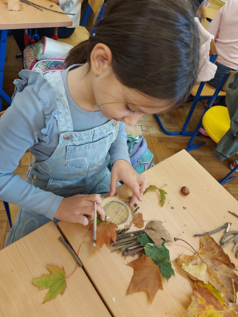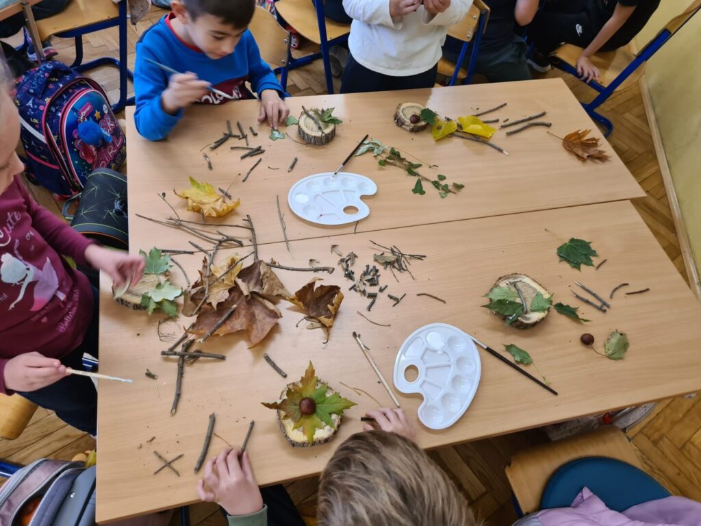 U razredu je voditeljica radionice učenicima pokazala raznolik biljni i životinjski svijet šume. Djeca su učila prepoznavati biljke i životinje, ali i promišljati o važnosti očuvanja prirode. Na kraju su od prikupljenih jesenskih plodova izrađivali kukce. To je potaknulo njihovu maštu, kreativnost i osjećaj postignuća.
