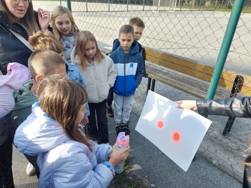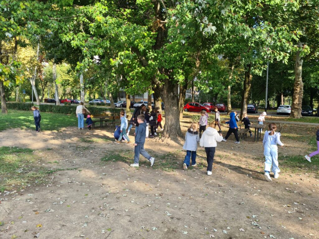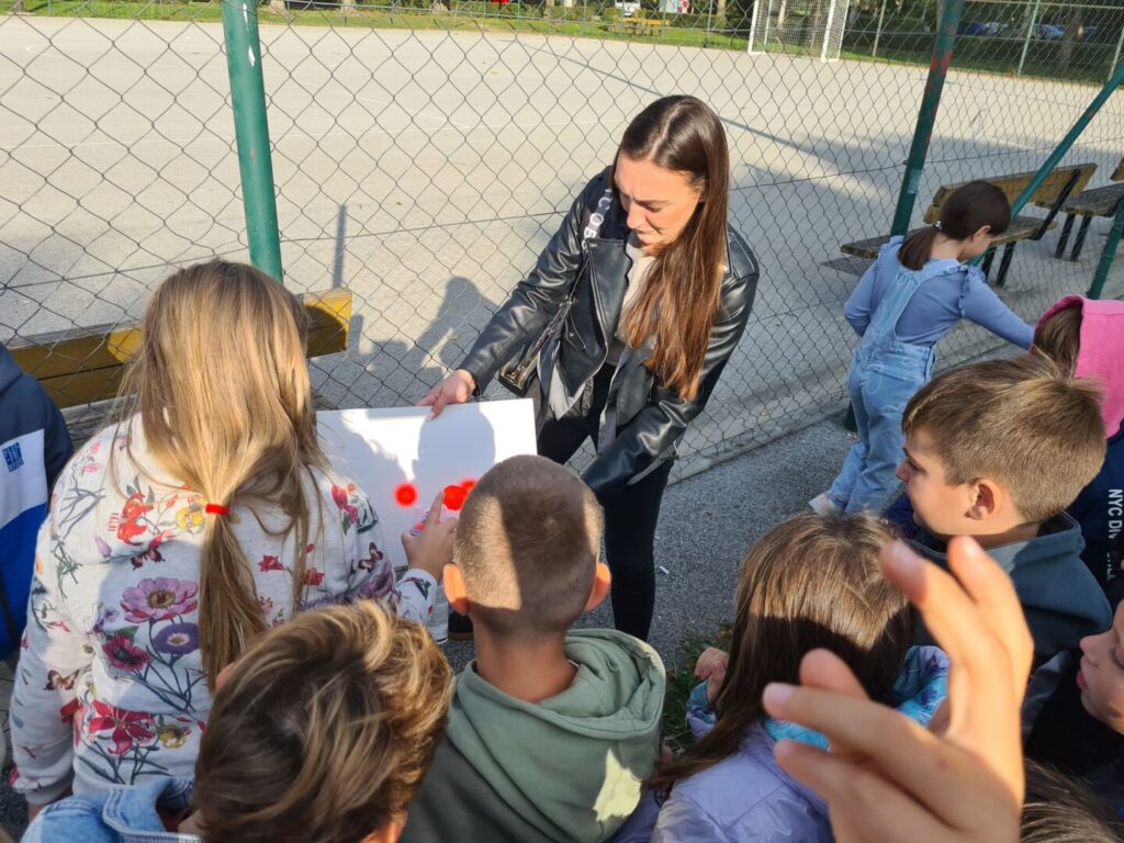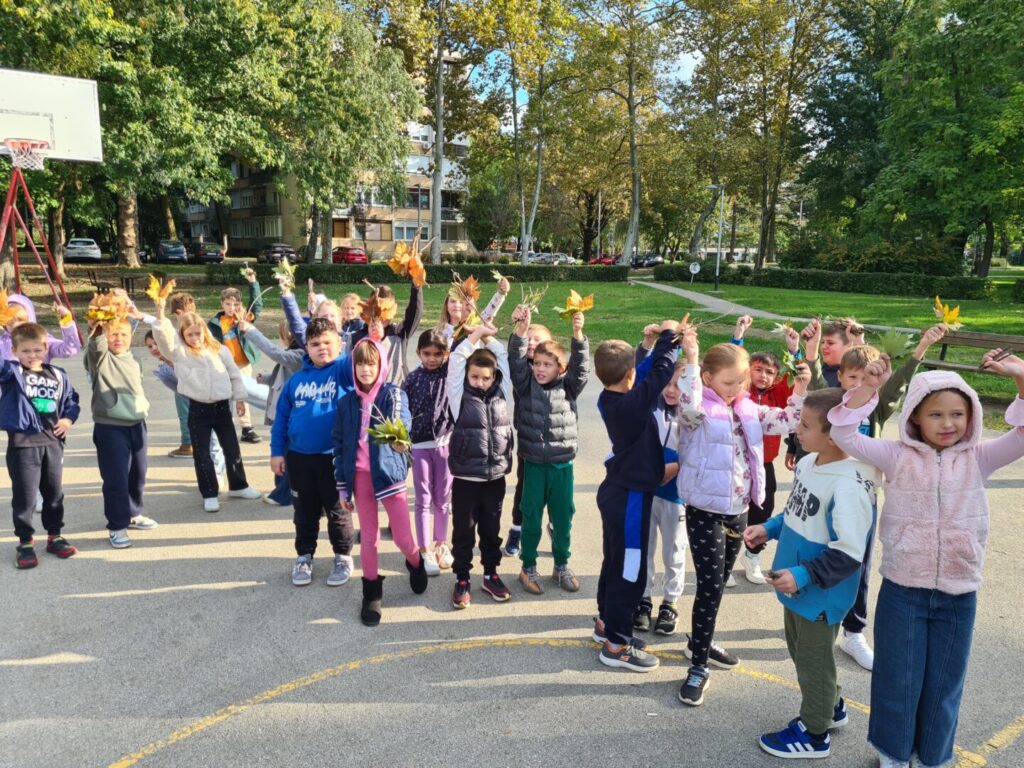 Radionica je započela na školskom igralištu gdje su učenici naučili kako se markiraju stabla za sječu u šumi te im je voditeljica objasnila razloge za sječu. Nakon toga su s puno veselja skupljali jesenske plodove u okolišu škole. Boravak na svježem zraku, istraživanje prirode i zajednički rad pridonijeli su osjećaju opuštenosti, suradnje i povezanosti s okolinom.