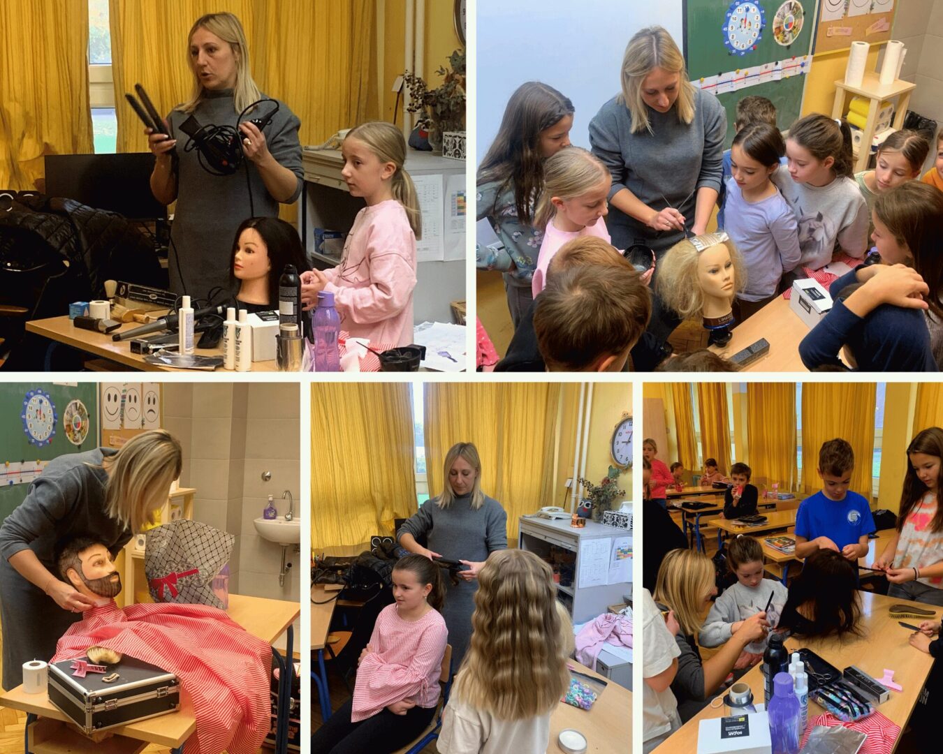 Ucenici 2.a su u goste primili mamu frizerku, gospođu Hrvat. Pokazala nam je stari pribor koji se nekada koristio u frizerskim salonima, pojasnila nam kako se mijesaju boje za kosu, prezentirala nacine sisanja na lutkama te ucenicima pravila frizure po njihovim zeljama. Bilo je jako edukativno i zabavno,