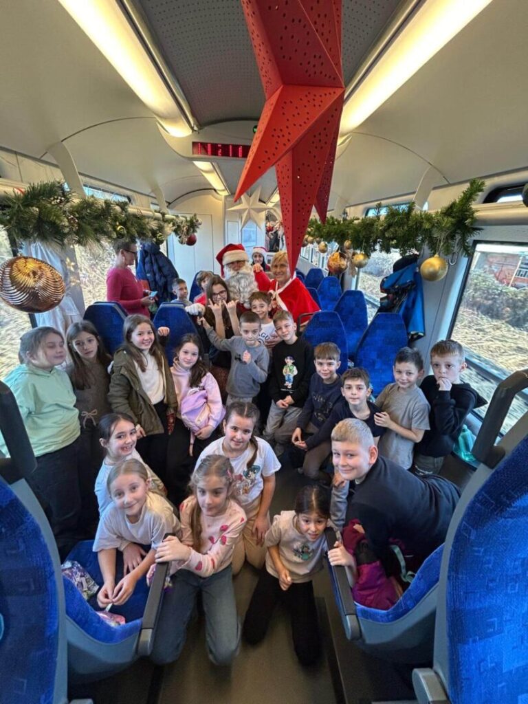 Učenici drugih razreda posjetili su Glavni kolodvor kako bi se upoznali s vrstama prijevoza i pravilima ponašanja u prometnim sredstvima koja su važna za sigurnost pješaka u prometu. Nakon razgledavanja kolodvora vozili su se u veselom vlaku Tin express. Ovaj poseban vlak donio je pravo blagdansko ozračje i veliko veselje među učenike. Tijekom vožnje Tin expressom učenike su dočekali Djed i Baka Mraz koji su im podijelili poklone i uljepšali ovo nezaboravno iskustvo. Pjesma, smijeh i blagdanski duh pratili su učenike tijekom cijelog putovanja. Ova terenska nastava omogućila je učenicima učenje kroz neposredno iskustvo, potaknula zajedništvo, radost i stvaranje lijepih uspomena uoči blagdana.